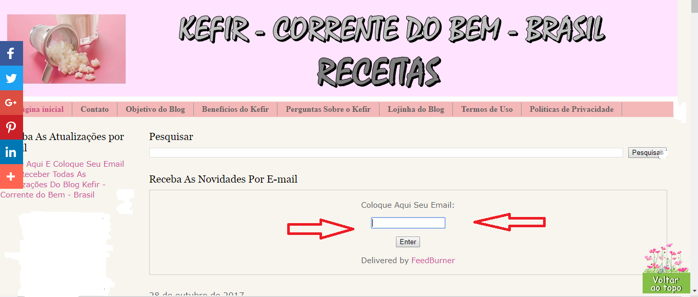 1) Coloque o seu e-mail, no campo do blog, conforme mostra a imagem abaixo. e clique no campo ENTER: